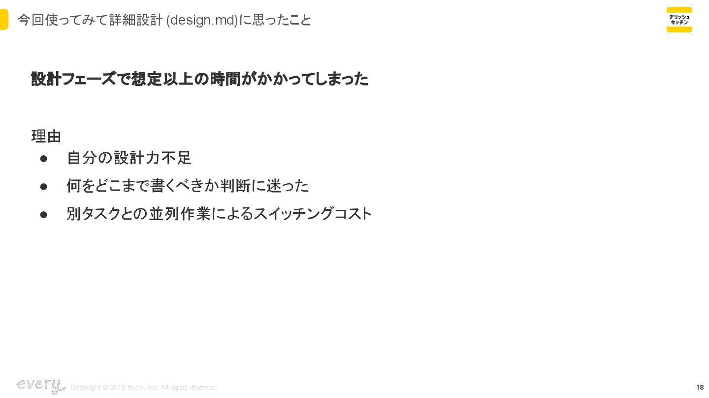 18 Copyright © 2015 every, Inc. All rights reserved. 今回使ってみて詳細設計