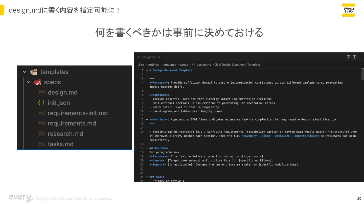 20 Copyright © 2015 every, Inc. All rights reserved. design.mdに書く内容を指定可能に!