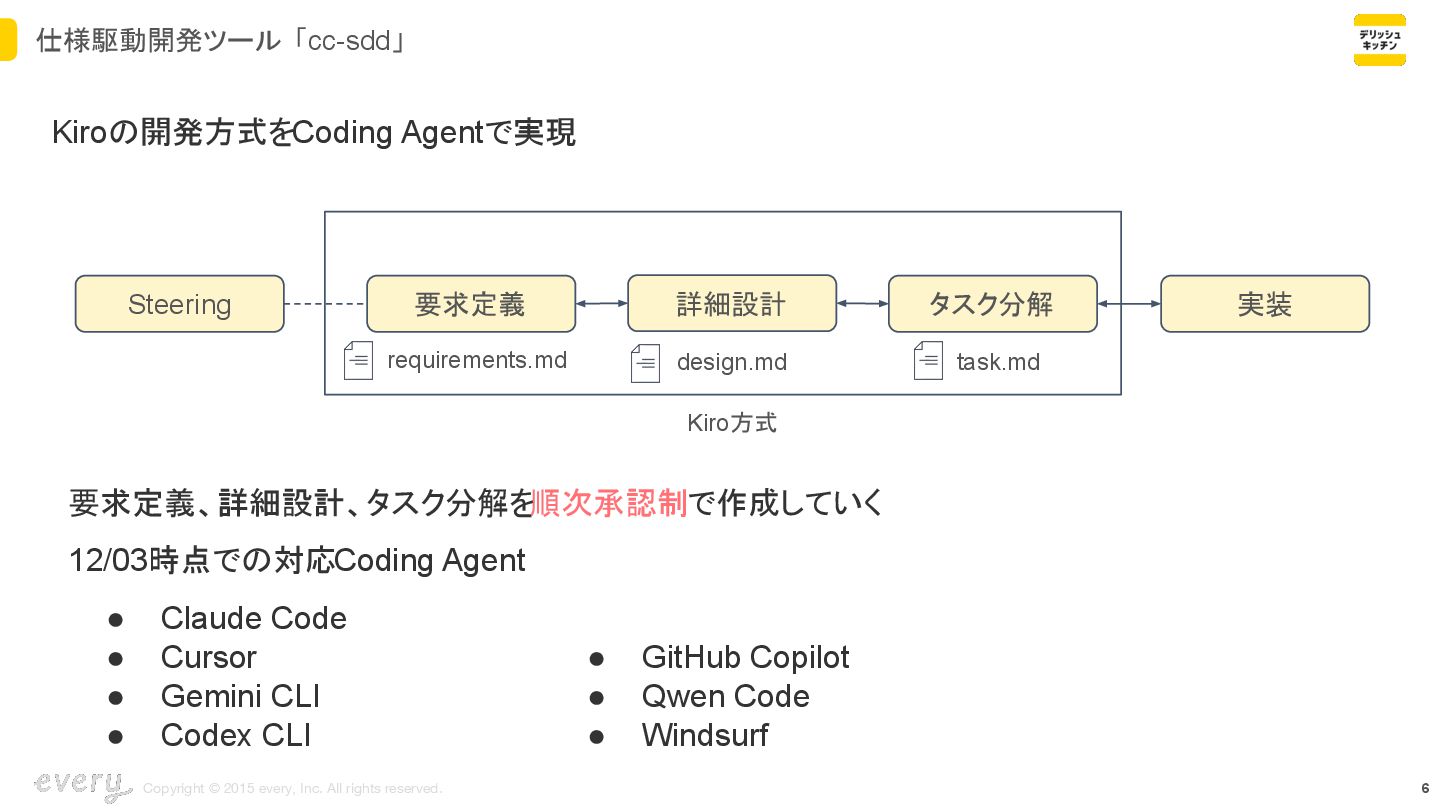 6 Copyright © 2015 every, Inc. All rights reserved. Kiroの開発方式をCoding