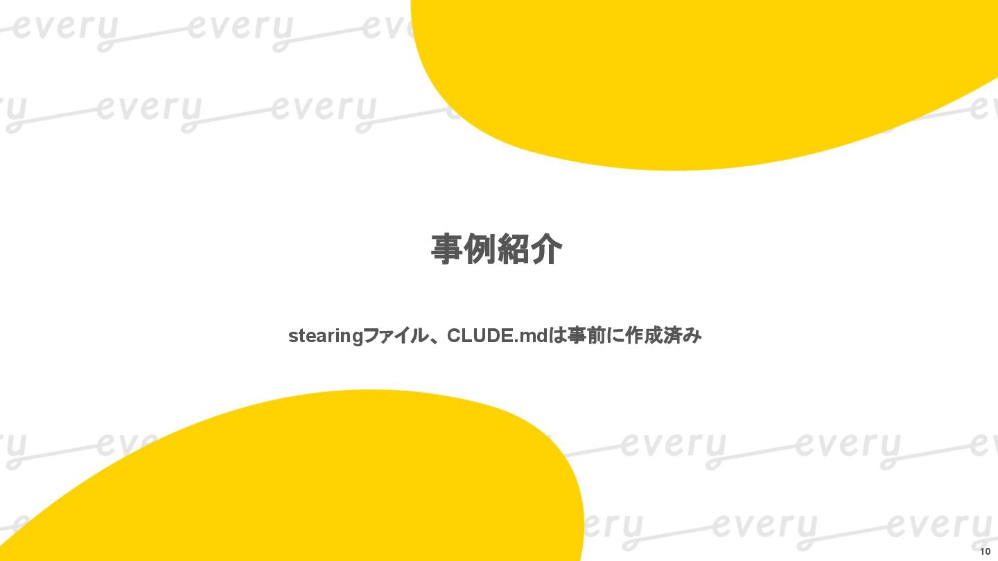 10 事例紹介 stearingファイル、 CLUDE.mdは事前に作成済み