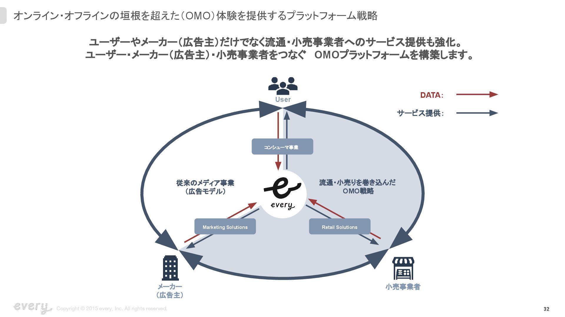 Copyright © 2015 every, Inc. All rights reserved. 32 オンライン・オフラインの垣根を超えた(OMO)体験を提供するプラットフォーム戦略