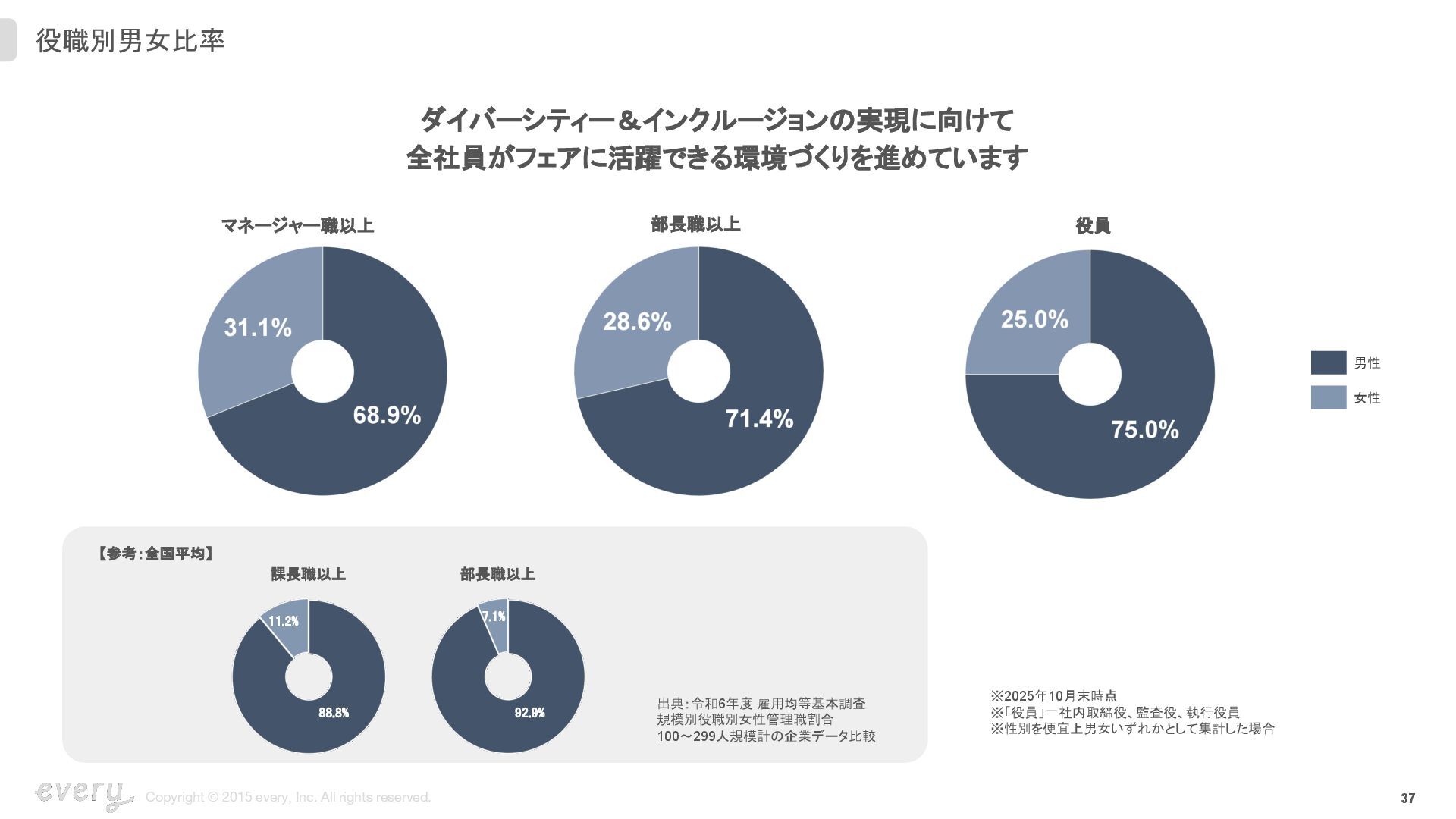 Copyright © 2015 every, Inc. All rights reserved. 37 役職別男女比率