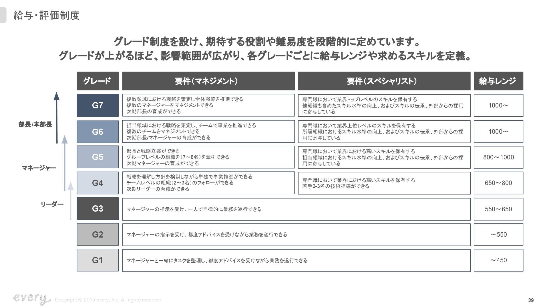 Copyright © 2015 every, Inc. All rights reserved. 39 給与・評価制度