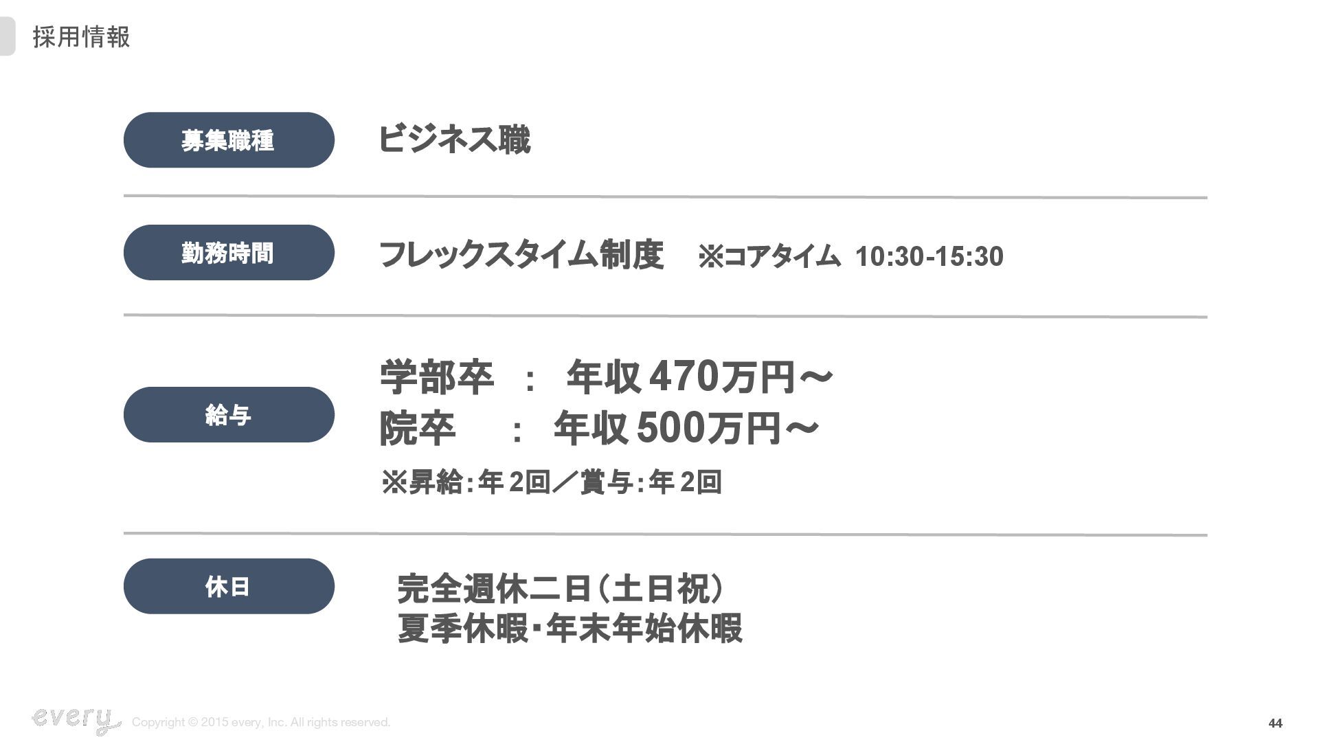 Copyright © 2015 every, Inc. All rights reserved. 44 募集職種