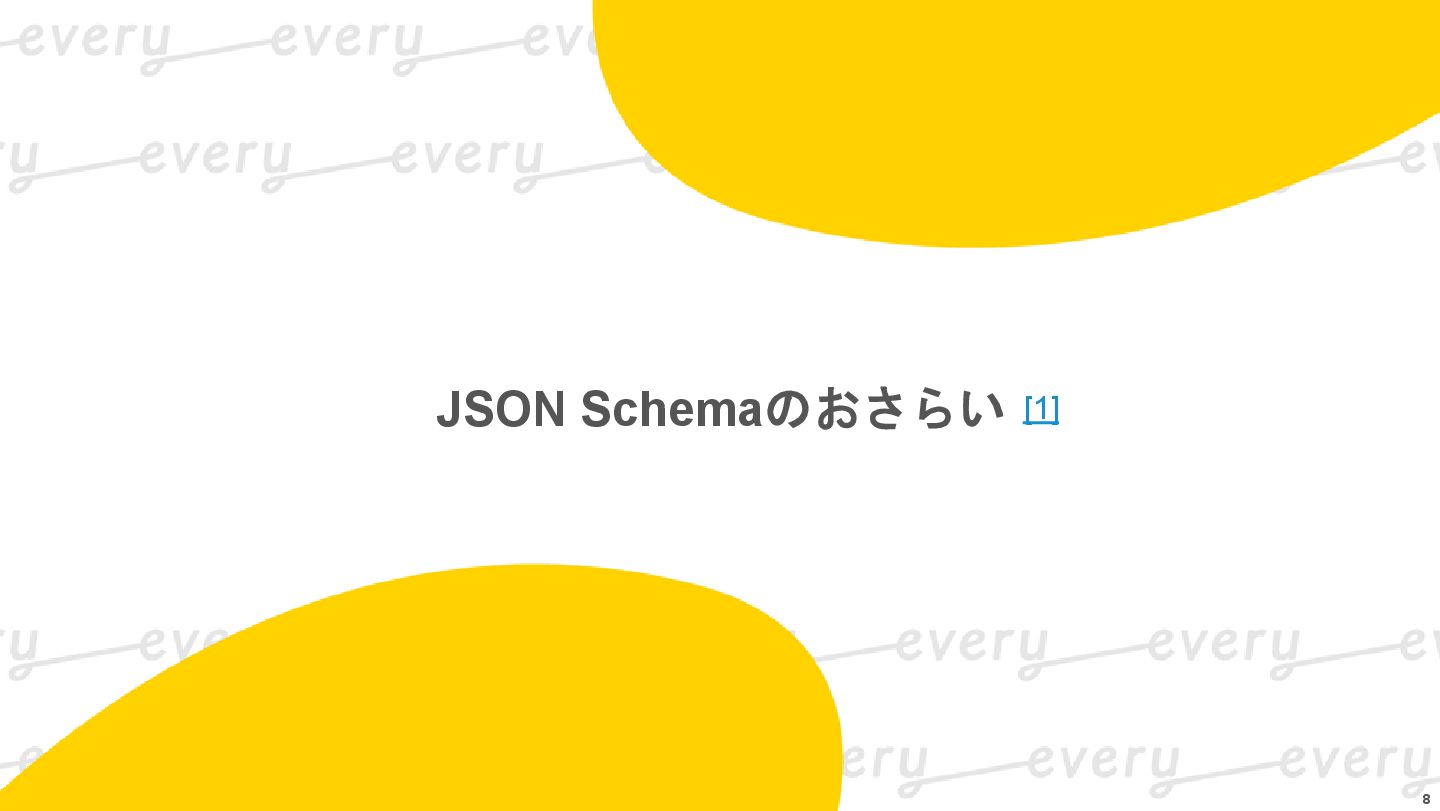 Schema • バージョンがあり、書き方がちょっとずつ変わったりしている ◦ Draft 2020-12 (最新世代の主流) ◦ Draft 2019-09 ◦ Draft 07 ◦ Draft 06 ◦ それ以前