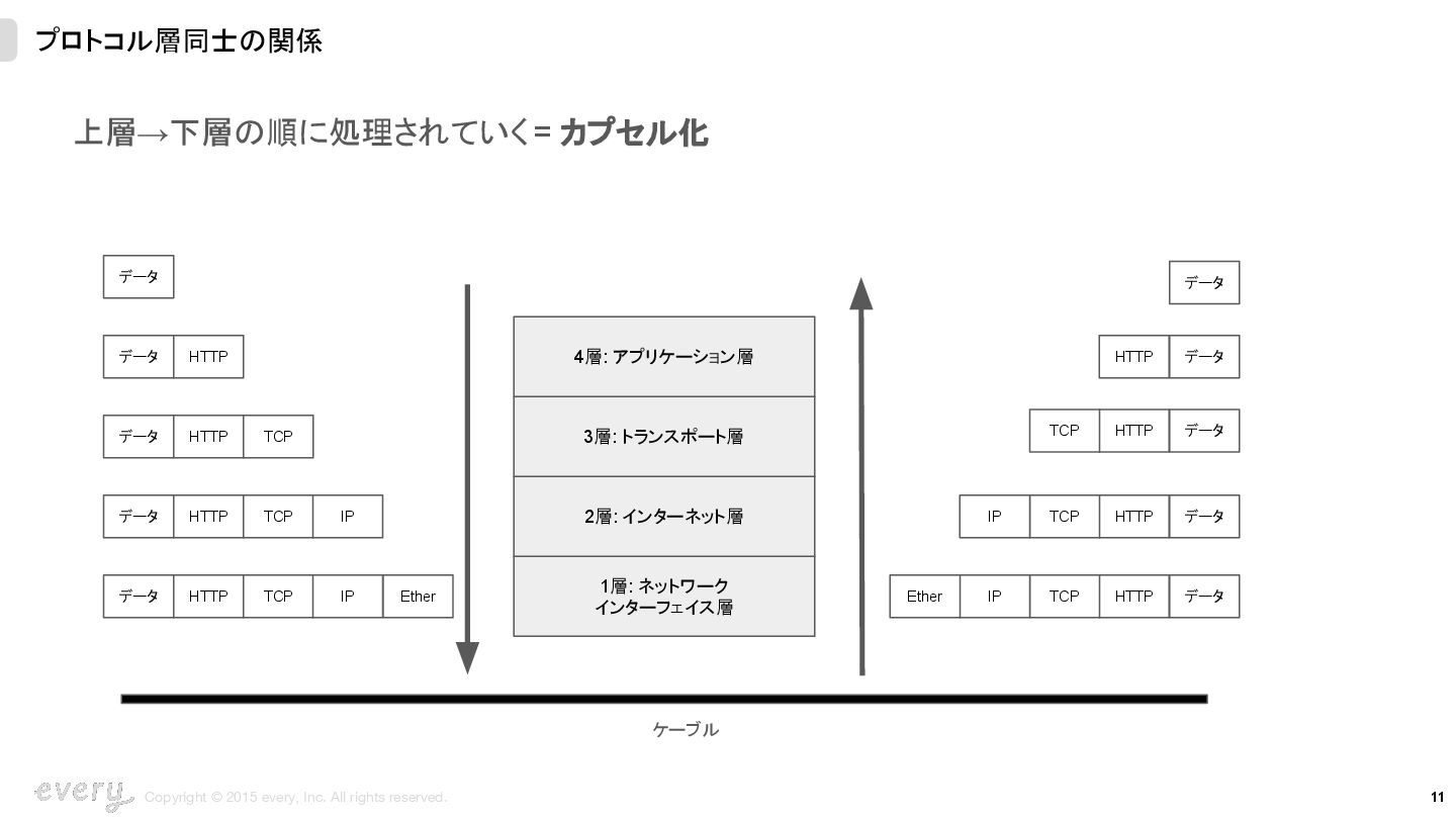 7. 11 Copyright © 2015 every, Inc. All rights reserved. プロトコル層同士の関係