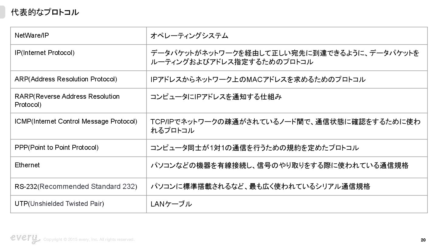 15. Copyright © 2015 every, Inc. All rights reserved. 20 代表的なプロトコル
