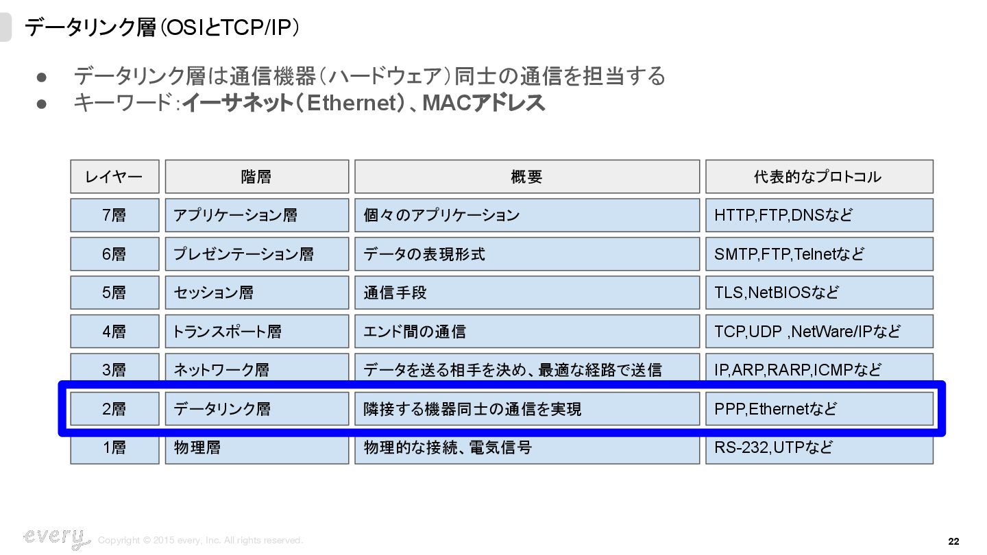 16. Copyright © 2015 every, Inc. All rights reserved. 22 データリンク層(OSIとTCP/IP)