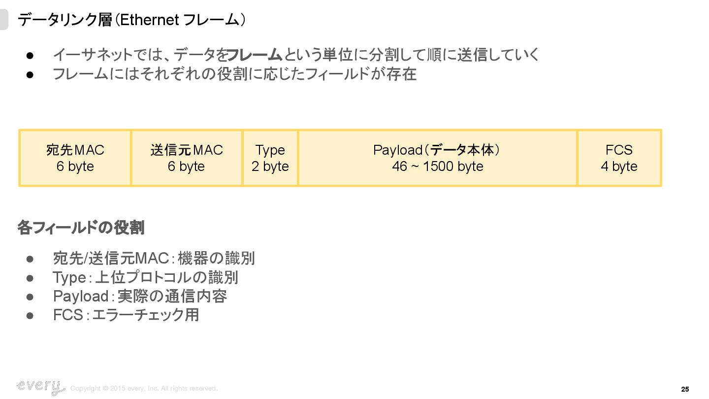 19. Copyright © 2015 every, Inc. All rights reserved. 25 データリンク層(Ethernet