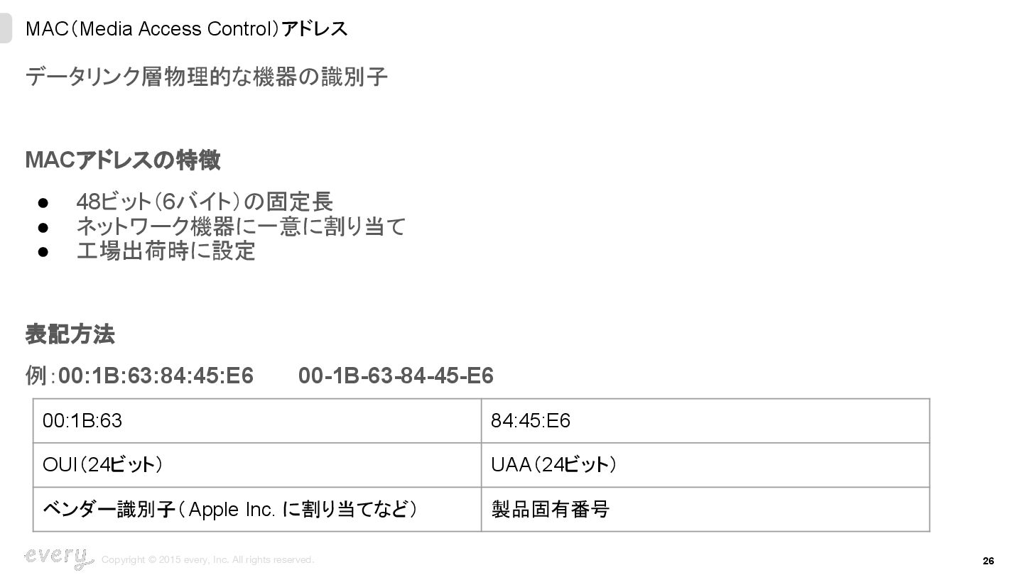 20. Copyright © 2015 every, Inc. All rights reserved. 26 データリンク層物理的な機器の識別子