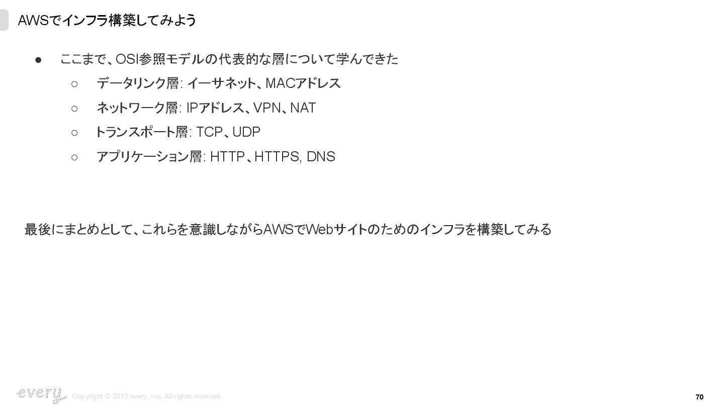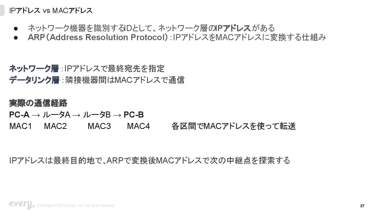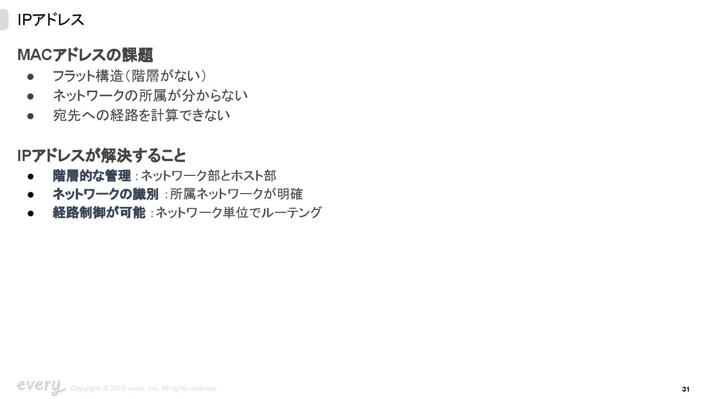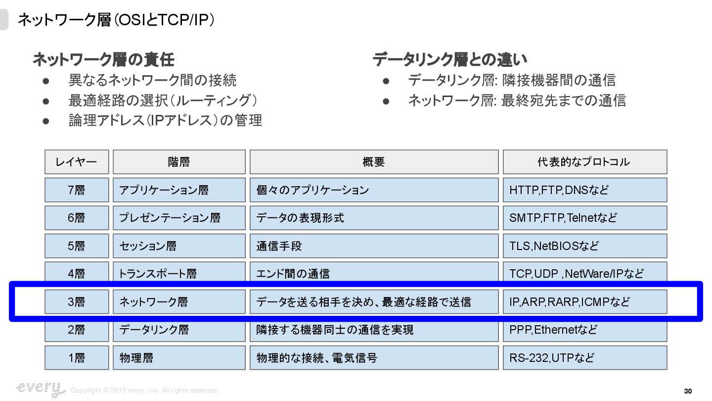 23. Copyright © 2015 every, Inc. All rights reserved. 30 ネットワーク層(OSIとTCP/IP)