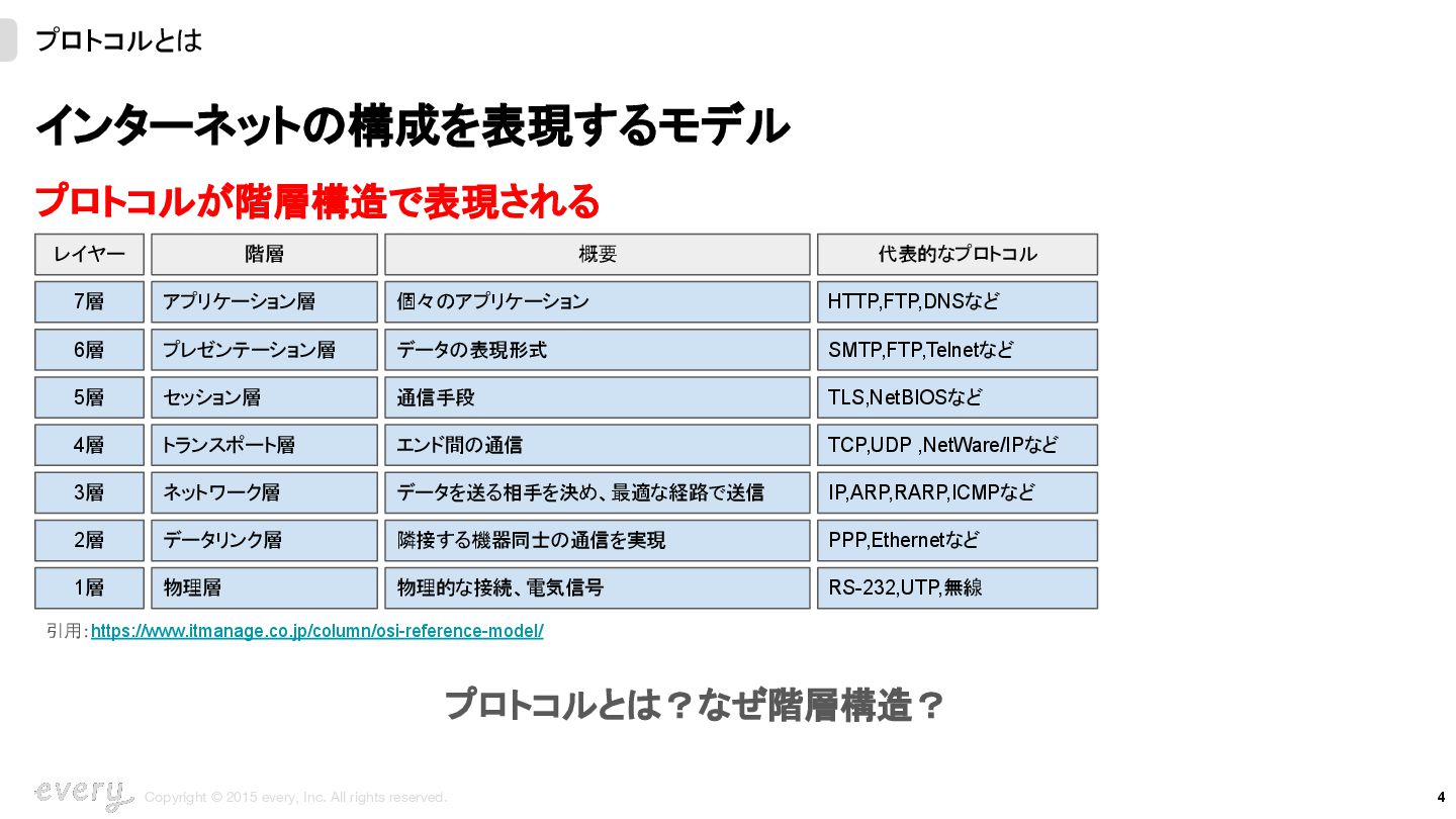 2. 4 Copyright © 2015 every, Inc. All rights reserved. プロトコルが階層構造で表現される