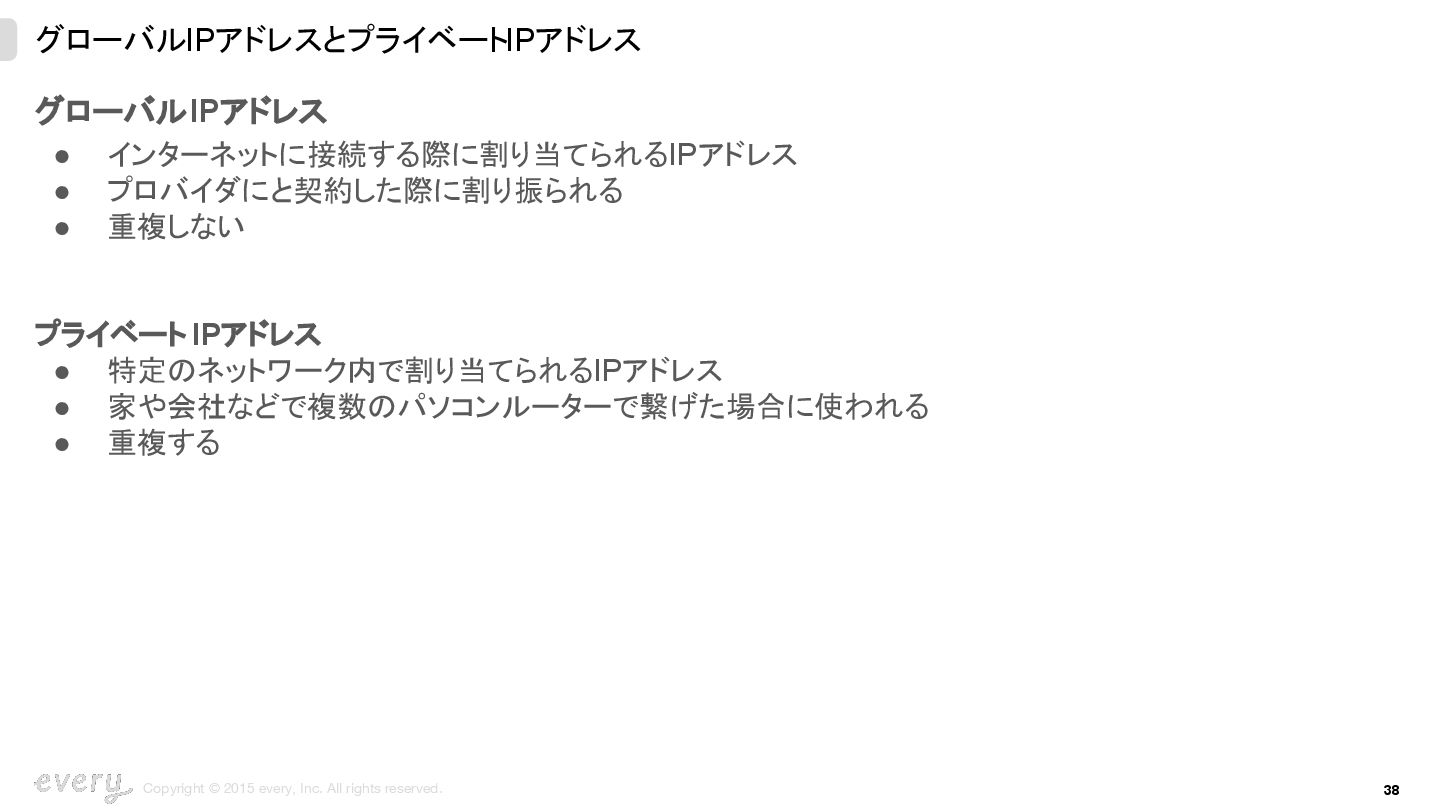 31. Copyright © 2015 every, Inc. All rights reserved. 38 グローバルIPアドレス