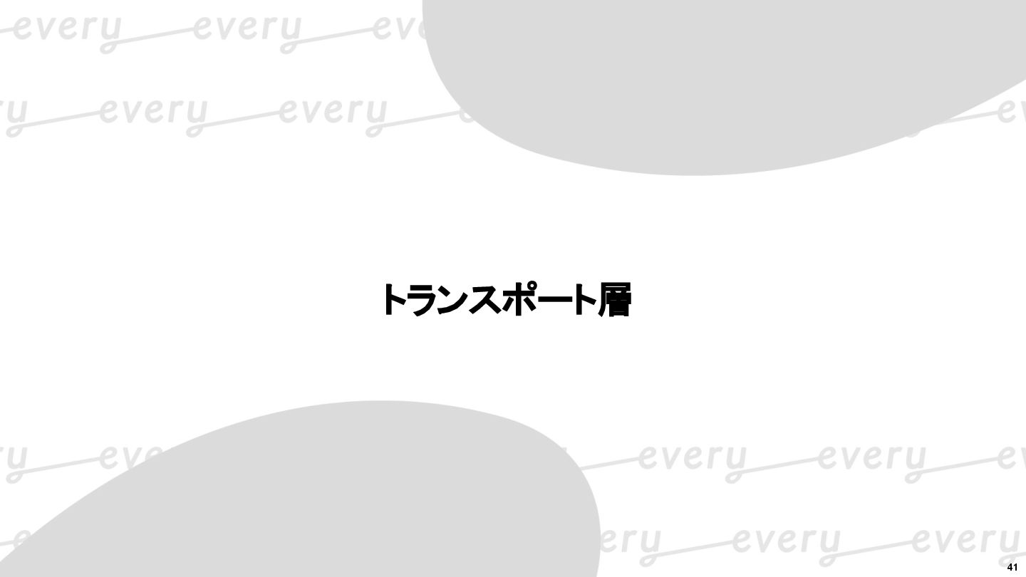ネットワーク層では、どのコンピューターからどのコンピューターに送るか をIPアドレスで指定した しかし、1つのコンピューターでは大抵複数のアプリケーションが動いている →どのアプリケーション(サービス)からどのアプリケーションに渡すか を決めないといけない • ネットワーク層までは純粋に送ることに注力していた →送り方を決めないといけない これらをトランスポート層が担っている 少しだけネットワーク層の復習