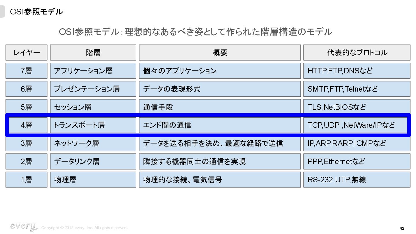 34. Copyright © 2015 every, Inc. All rights reserved. 42 OSI参照モデル