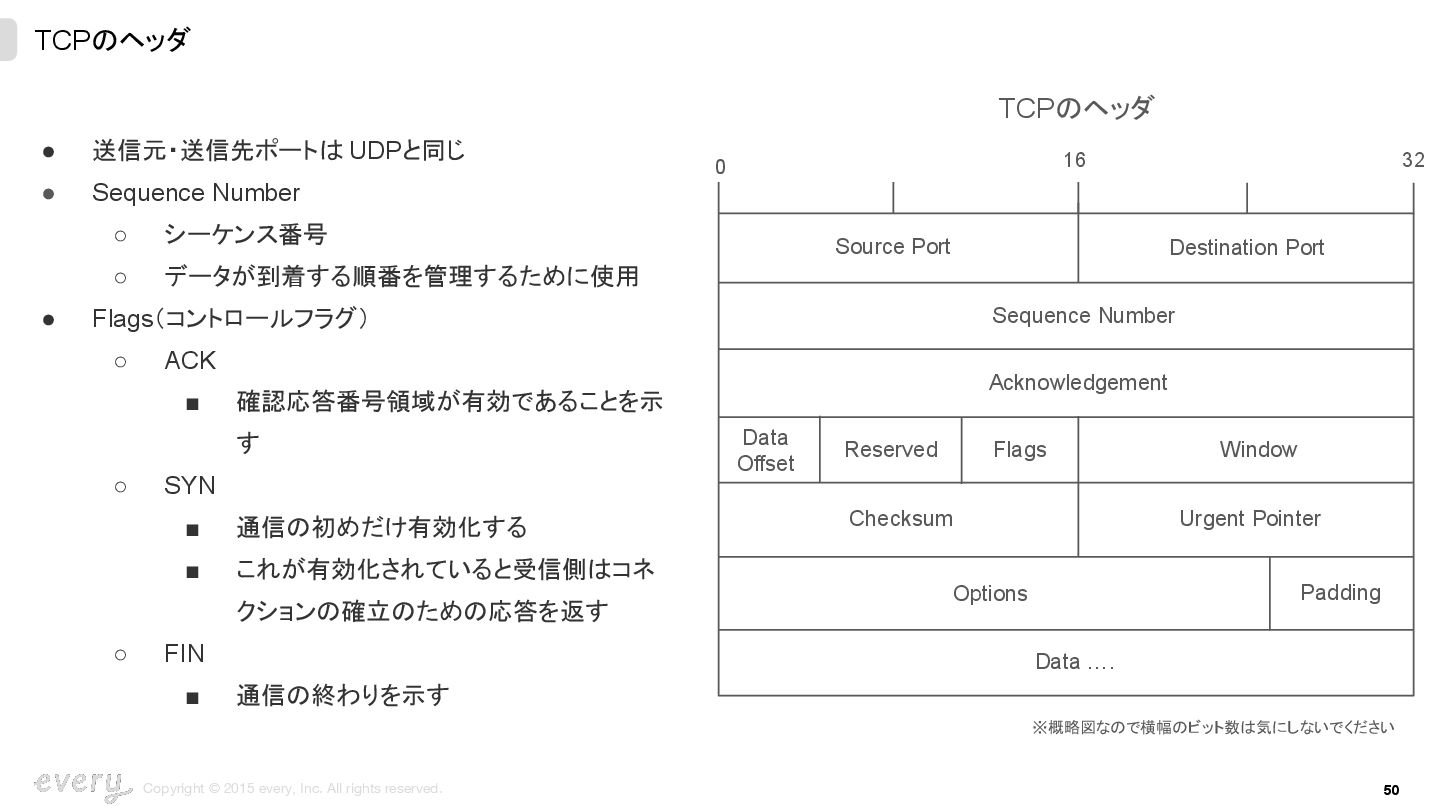 42. Copyright © 2015 every, Inc. All rights reserved. 50 TCPのヘッダ
