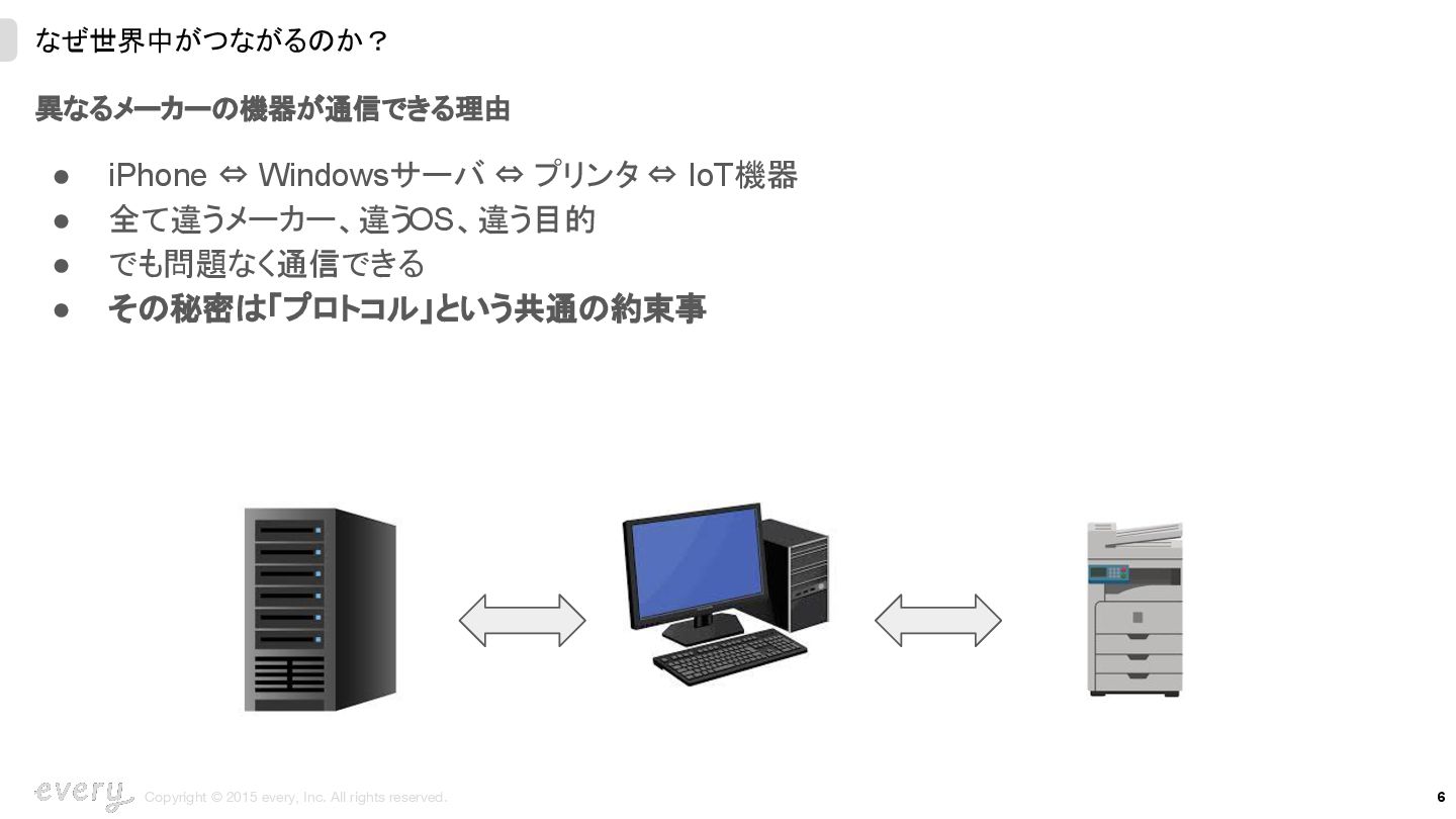3. 6 Copyright © 2015 every, Inc. All rights reserved. 異なるメーカーの機器が通信できる理由