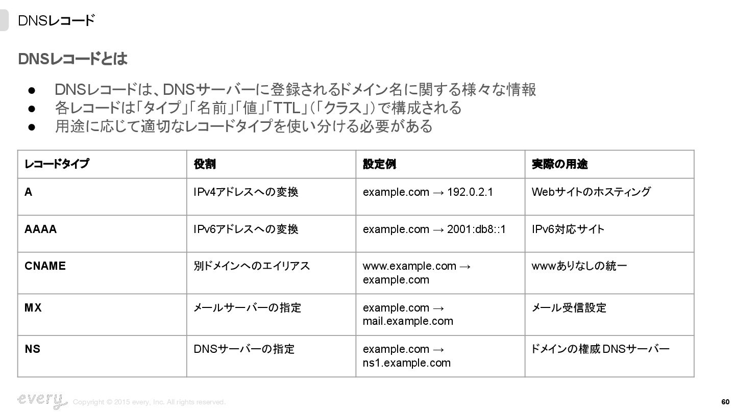 50. 60 Copyright © 2015 every, Inc. All rights reserved. DNSレコードとは