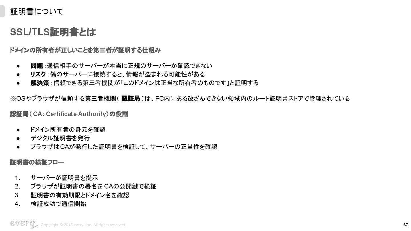 55. 67 Copyright © 2015 every, Inc. All rights reserved. SSL/TLS証明書とは