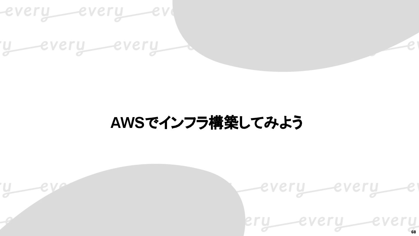 ここまで、OSI参照モデルの代表的な層について学んできた ◦ データリンク層: イーサネット、MACアドレス ◦ ネットワーク層: IPアドレス、VPN、NAT ◦ トランスポート層: TCP、UDP ◦ アプリケーション層: HTTP、HTTPS, DNS 最後にまとめとして、これらを意識しながらAWSでWebサイトのためのインフラを構築してみる AWSでインフラ構築してみよう