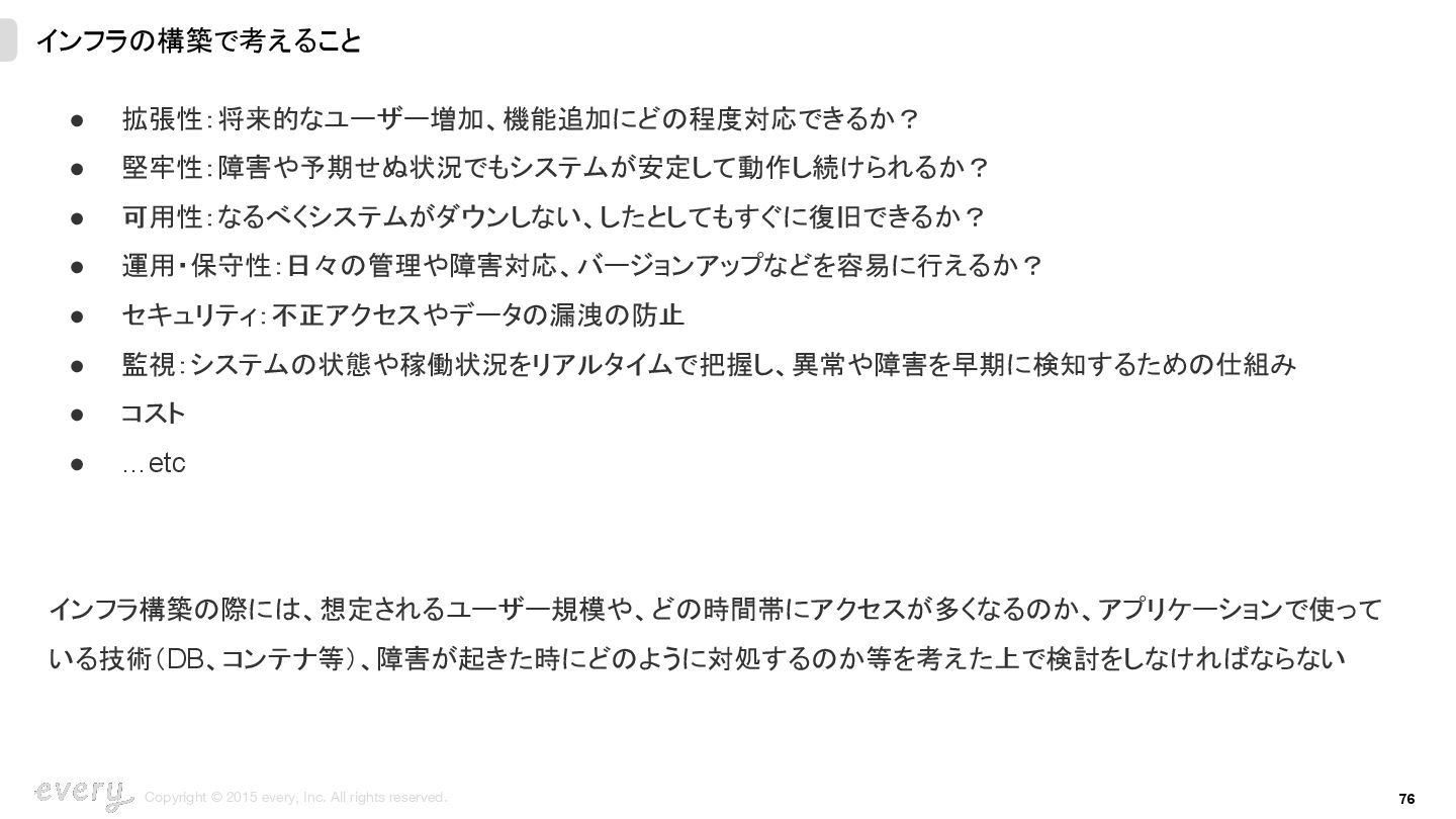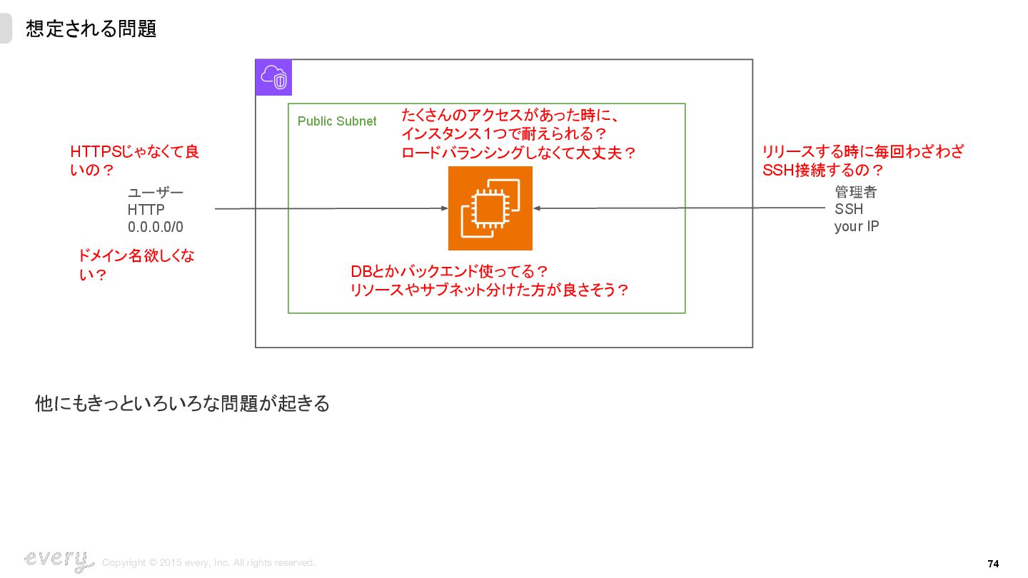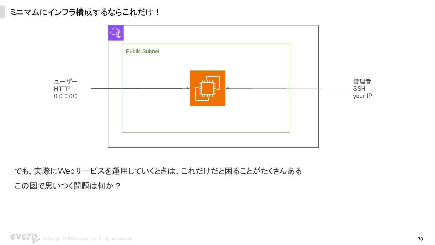 60. Copyright © 2015 every, Inc. All rights reserved. 73 でも、実際にWebサービスを運用していくときは、これだけだと困ることがたくさんある