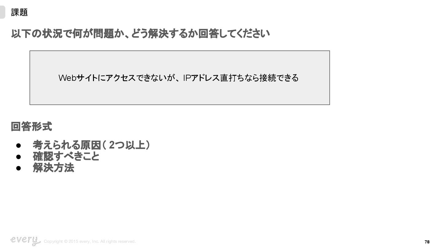 65. Copyright © 2015 every, Inc. All rights reserved. 78 課題