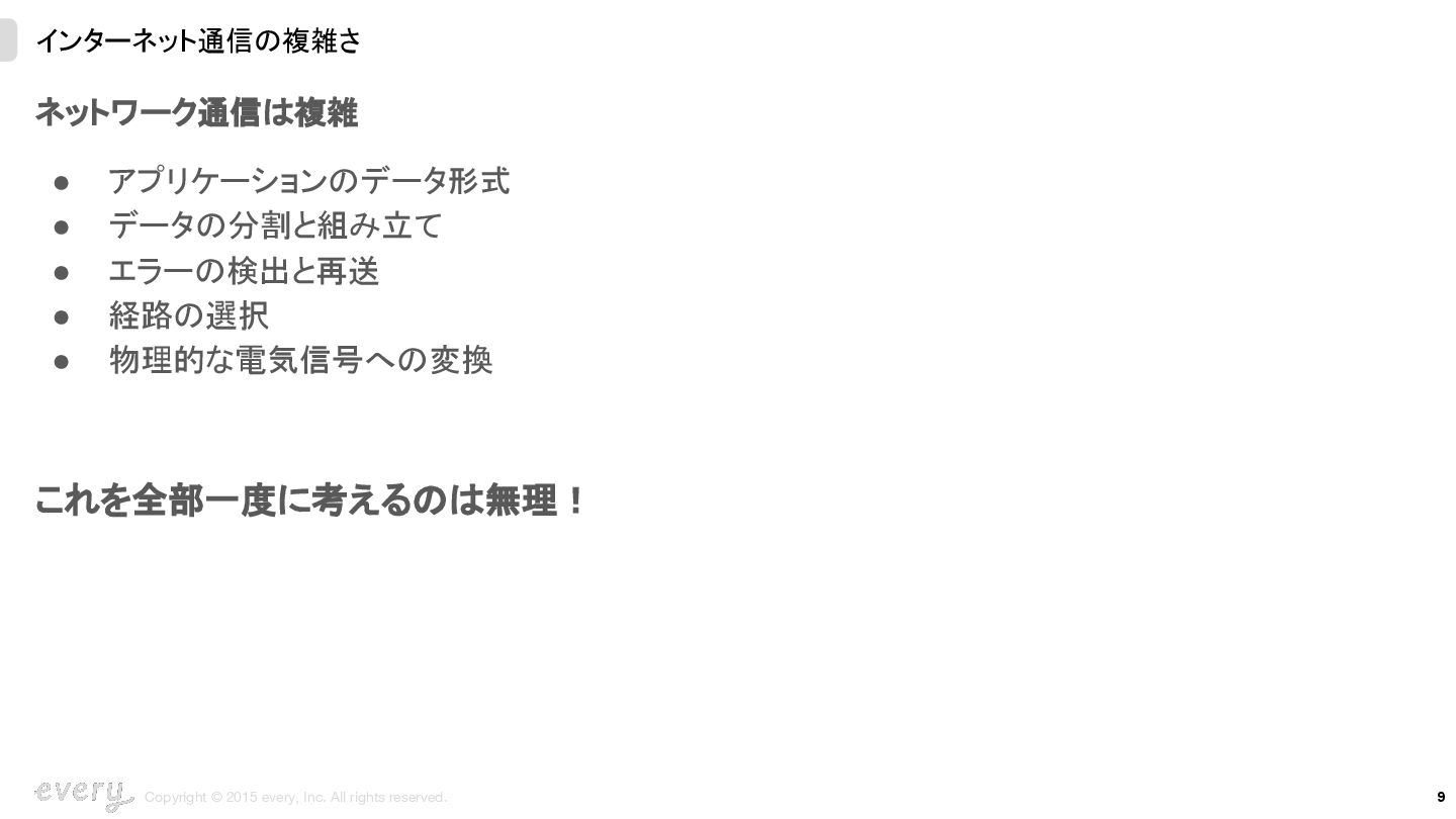 5. 9 Copyright © 2015 every, Inc. All rights reserved. ネットワーク通信は複雑