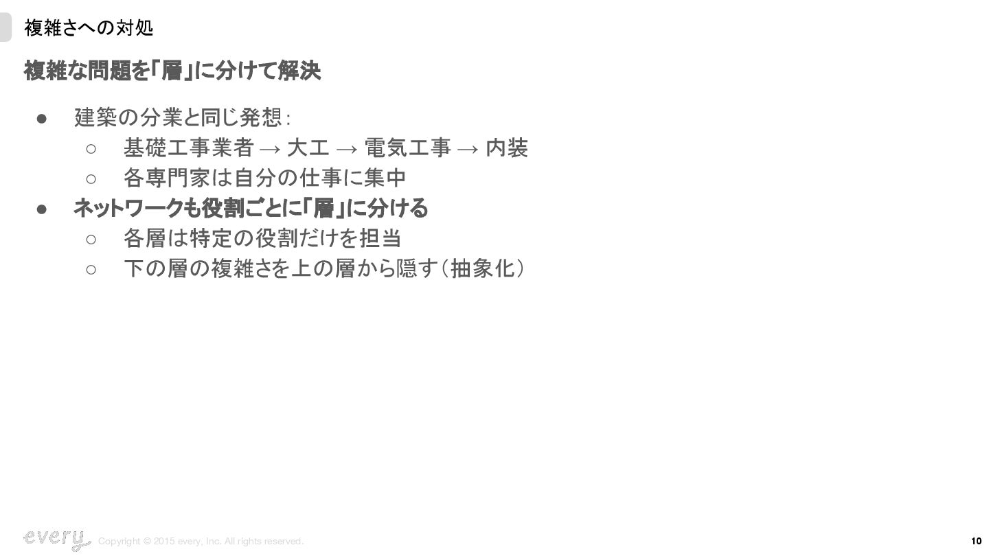 6. 10 Copyright © 2015 every, Inc. All rights reserved. 複雑な問題を「層」に分けて解決