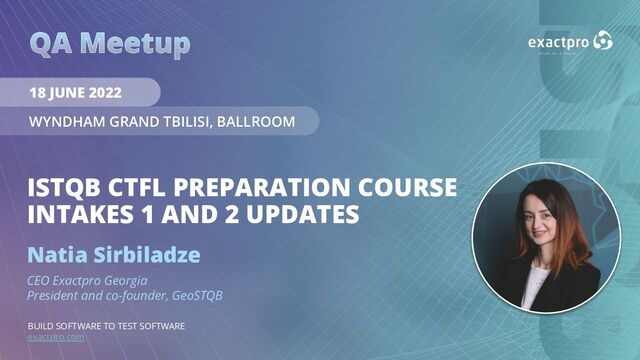 Natia reviewed the results of the first intake of the ISTQB CTFL Preparation Course Exactpro conducted this spring. She also shared important information on the upcoming Intake 2.