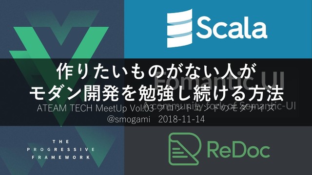 作りたいものがない人が モダン開発を勉強し続ける方法 ATEAM TECH MeetUp Vol.03 フロントエンドのモダナイズ @smogami 2018-11-14
