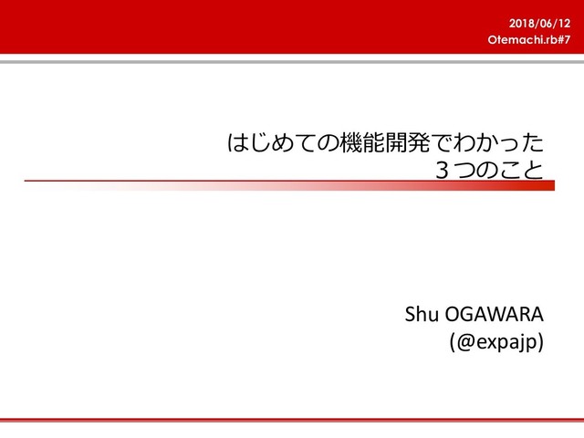2018/06/12 Otemachi.rb#7 Shu OGAWARA (@expajp)