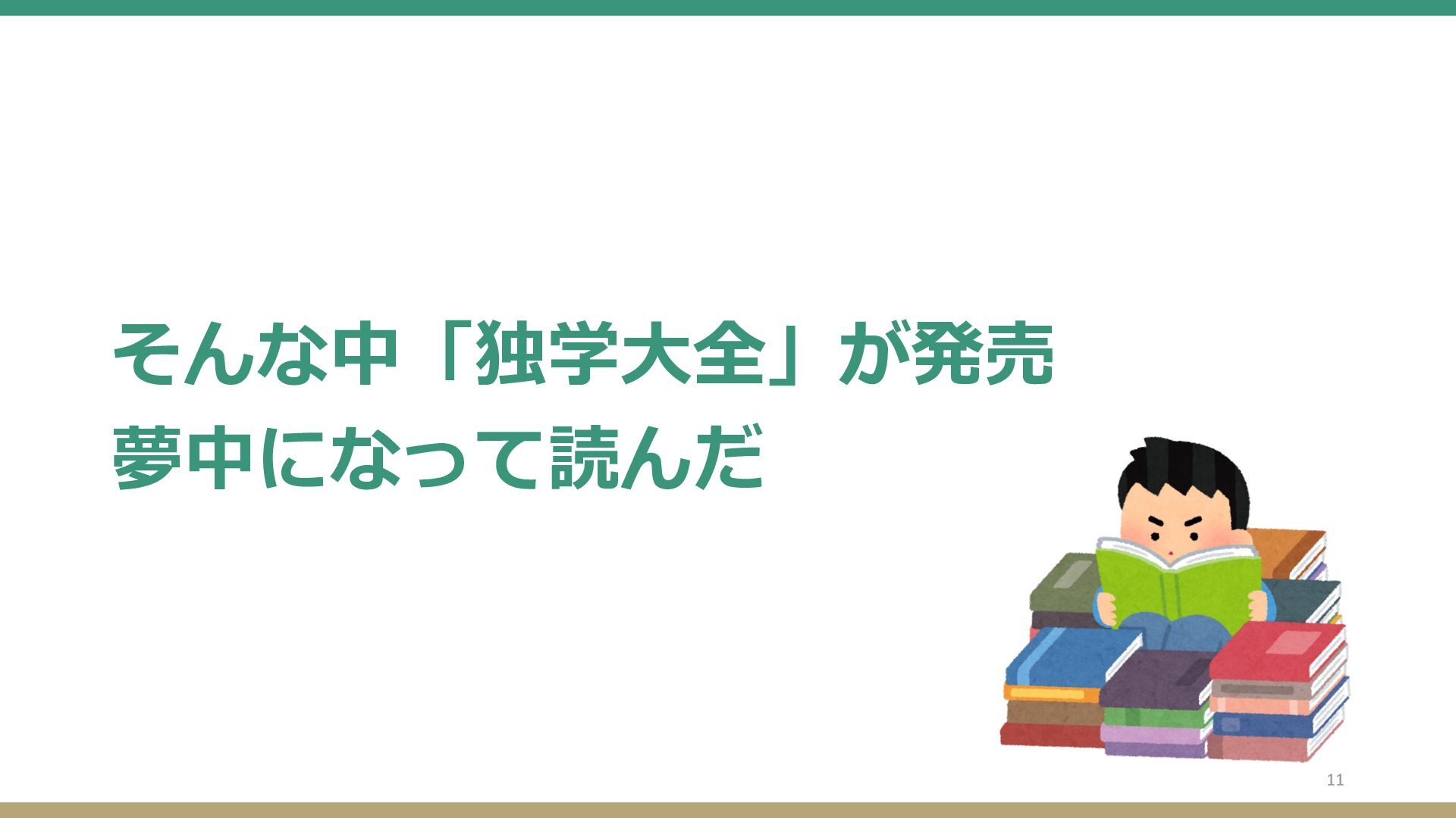 そんな中「独学⼤全」が発売 夢中になって読んだ 11