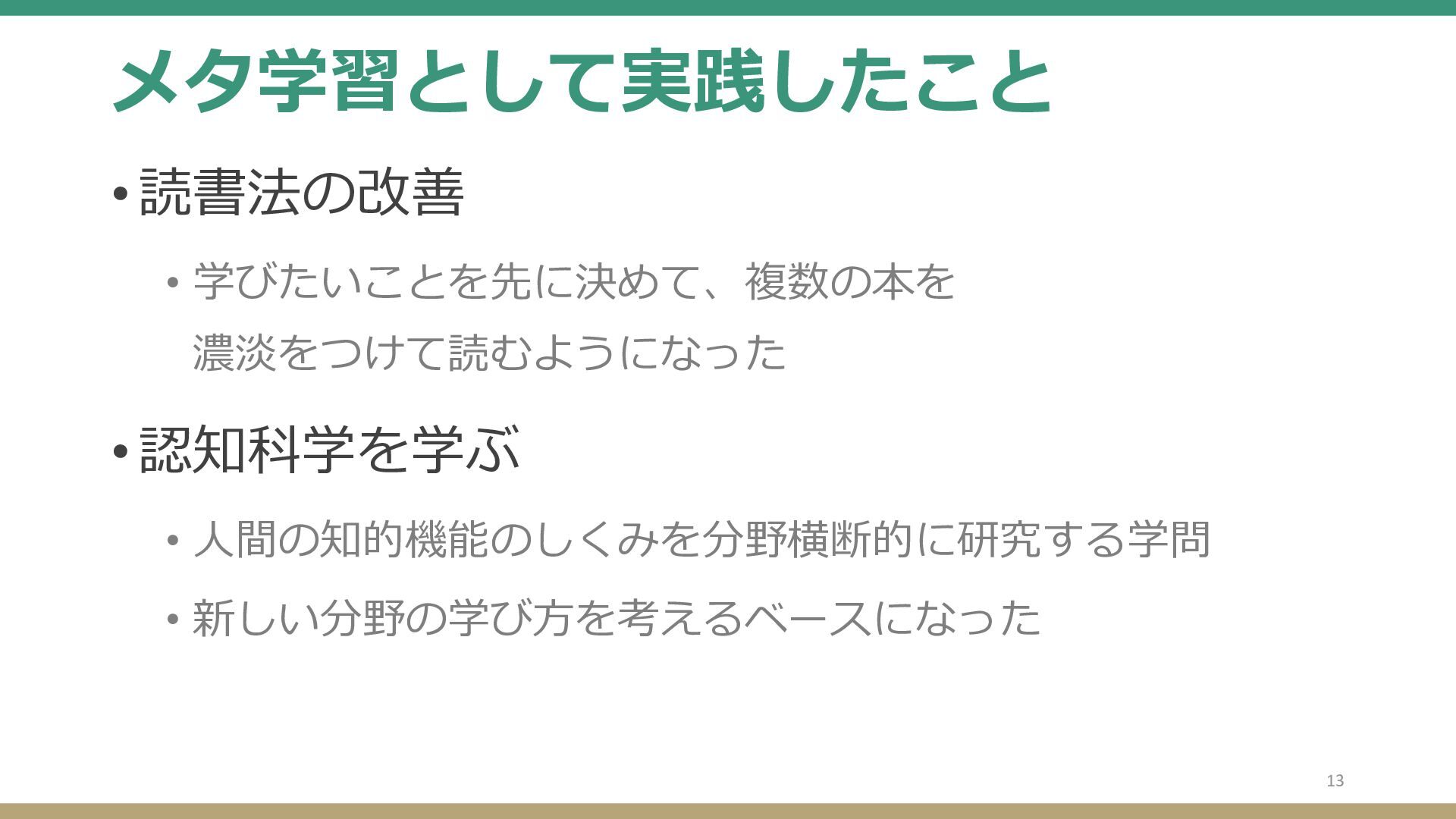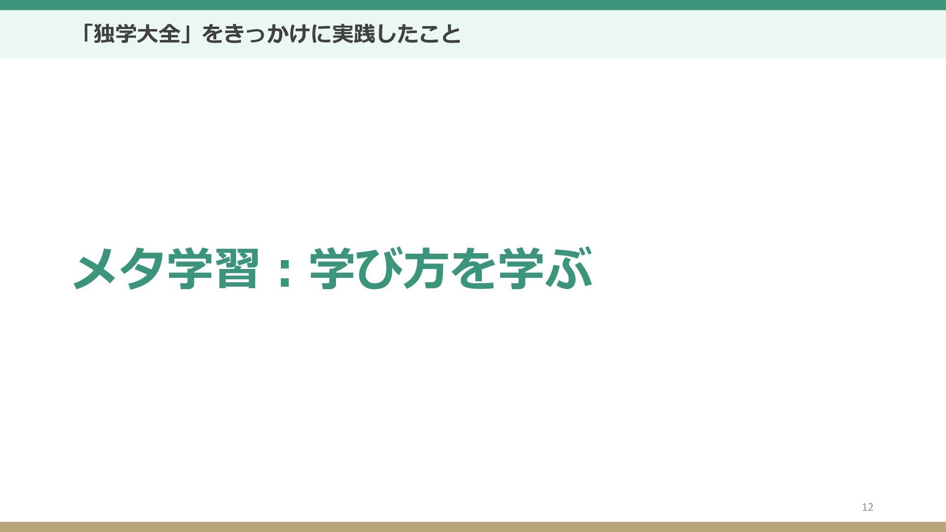 12 「独学⼤全」をきっかけに実践したこと メタ学習︓学び⽅を学ぶ