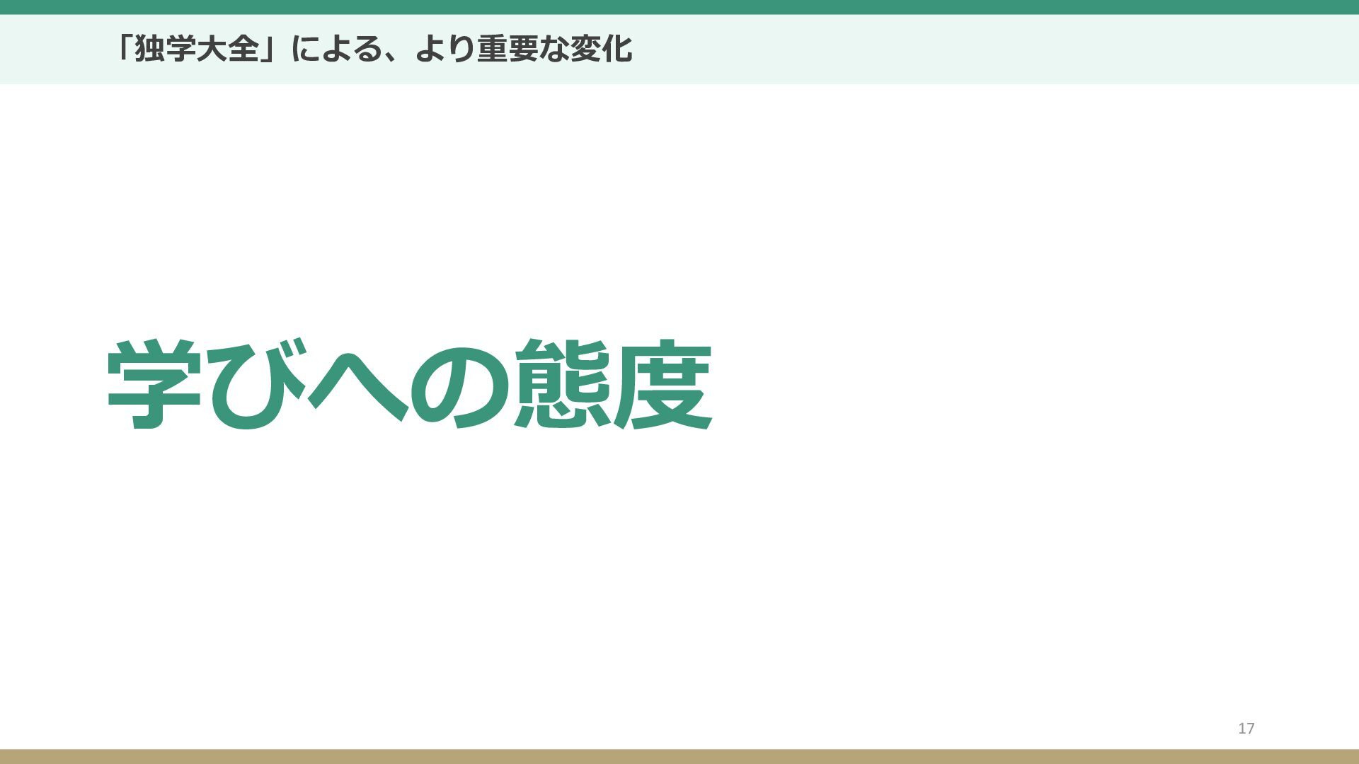 17 「独学⼤全」による、より重要な変化 学びへの態度