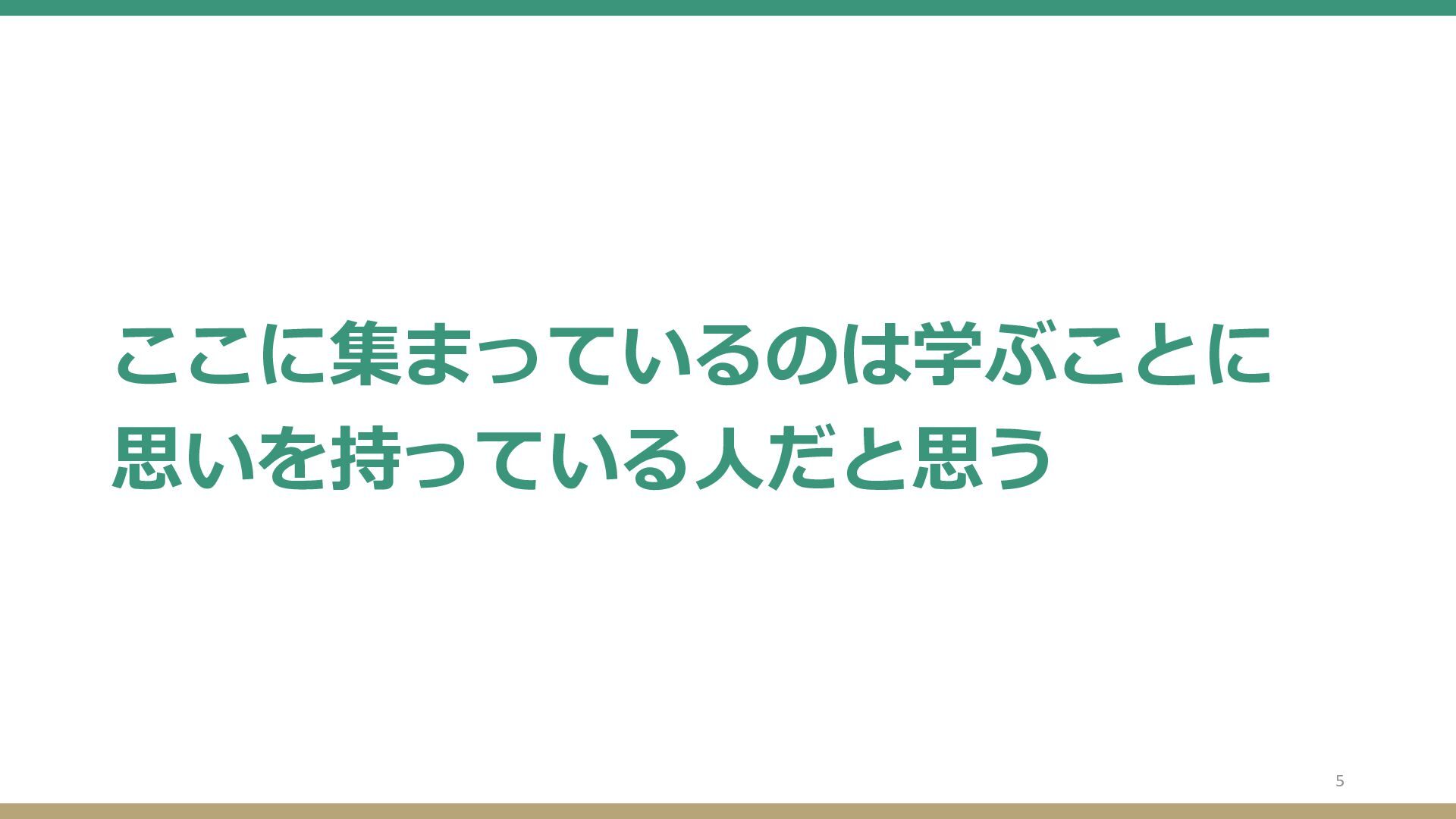 ここに集まっているのは学ぶことに 思いを持っている⼈だと思う 5