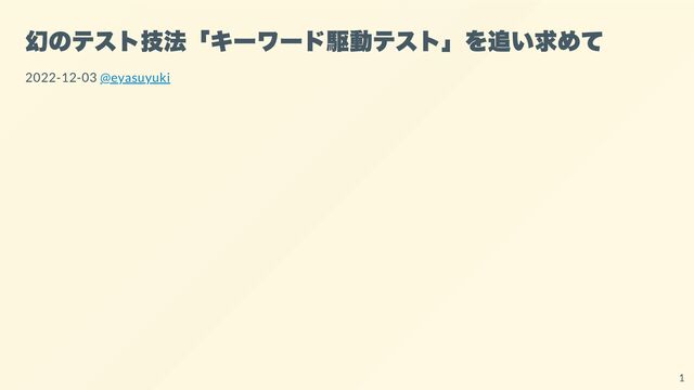 幻のテスト技法「キーワード駆動テスト」を追い求めて 2022-12-03 @eyasuyuki 1