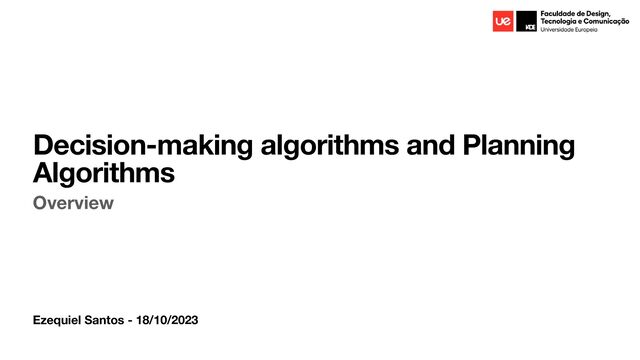 Decision-making algorithms and Planning Algorithms Overview - Presentation on Advanced Artificial Intelligence for Games and Interactive Applications Discipline, Prof. Fabio Guilherme, Phd.