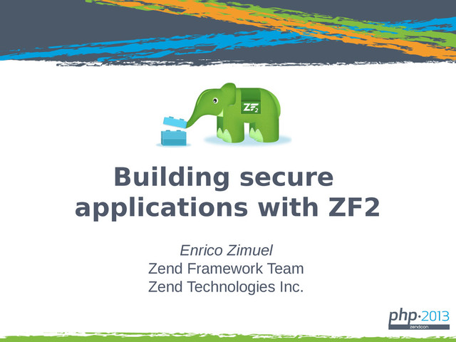 Security is a very important aspect of web applications and is not only limited to "filter the input and escape the output". In this talk we will present the security features of Zend Framework 2 that can help PHP developers to build secure web applications. We will talk about the Authentication and Authorization component, the Escaper component and the Cryptographic component that can be used to safely store user's password and protect sensitive data using strong cryptographic algorithms like AES, Bcrypt, Scrypt, RSA, etc.