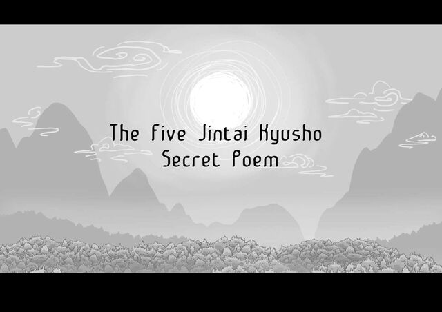 " Thanks to the Five Jintai Kyusho Secret Poem, an over-confident student is about to fight her first ritual of passage against a fierce mystic monster, alongside her contemplative master and his fellow ninja cat. "