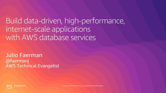 rights reserved. S U M M I T Build data-driven, high-performance, internet-scale applications with AWS database services Julio Faerman @faermanj AWS Technical Evangelist