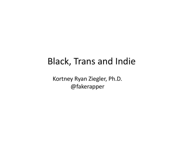 Black, Trans and Indie Kortney Ryan Ziegler, Ph.D.