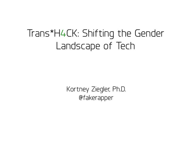 Trans*H4CK: Shifting the Gender Landscape of Tech Kortney Ziegler, Ph.D.