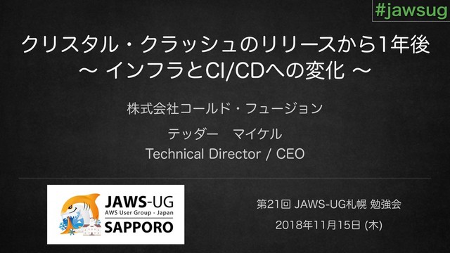 A fifteen minute presentation I gave at the 21st Japan AWS User's Group in Sapporo (on 2018/11/15) giving an overview of the changes that were made to our AWS infrastructure and CI/CD build pipeline over a year from the initial release of Crystal Clash. I also cover how we make use of PHP with AWS Lambda to provide access to the game API from iOS/Android devices.