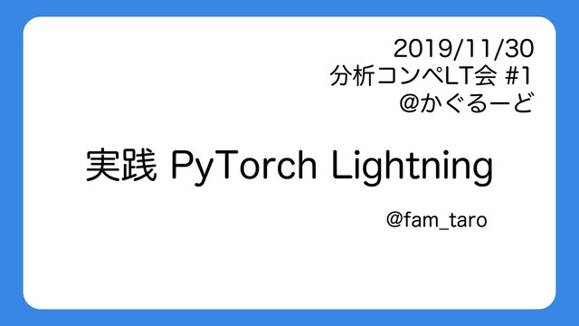 実践 PyTorch Lightning (2019/11/30 分析コンペLT会 #1)