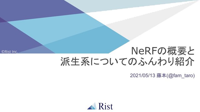 Srinivasan, M. Tancik, J. T. Barron, R. RamamoorthiとR. Ng, 「NeRF: Representing Scenes as Neural Radiance Fields for View Synthesis」, arXiv:2003.08934 [cs], 8月 2020, 参照: 5月 14, 2021. [Online]. Available at: http://arxiv.org/abs/2003.08934 • R. Martin-Brualla, N. Radwan, M. S. M. Sajjadi, J. T. Barron, A. DosovitskiyとD. Duckworth, 「NeRF in the Wild: Neural Radiance Fields for Unconstrained Photo Collections」, arXiv:2008.02268 [cs], 1月 2021, 参照: 5月 14, 2021. [Online]. Available at: http://arxiv.org/abs/2008.02268 • [DL輪読会]NeRF: Representing Scenes as Neural Radiance Fields for View Synthesis • 【論文読解】NeRF in the Wild: Neural Radiance Fields for Unconstrained Photo Collections - Qiita • 三次元空間のニューラルな表現と NeRF | ALBERT Official Blog 参考文献