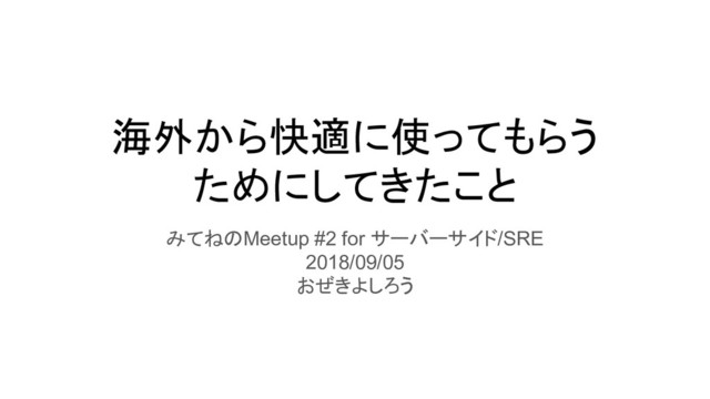 海外から快適に使ってもらう ためにしてきたこと みてねのMeetup #2 for サーバーサイド/SRE 2018/09/05 おぜきよしろう
