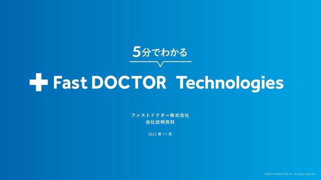 1 Fast DOCTOR Tehnologies 分でわかる 5 ©2022 FastDOCTOR Inc. All
