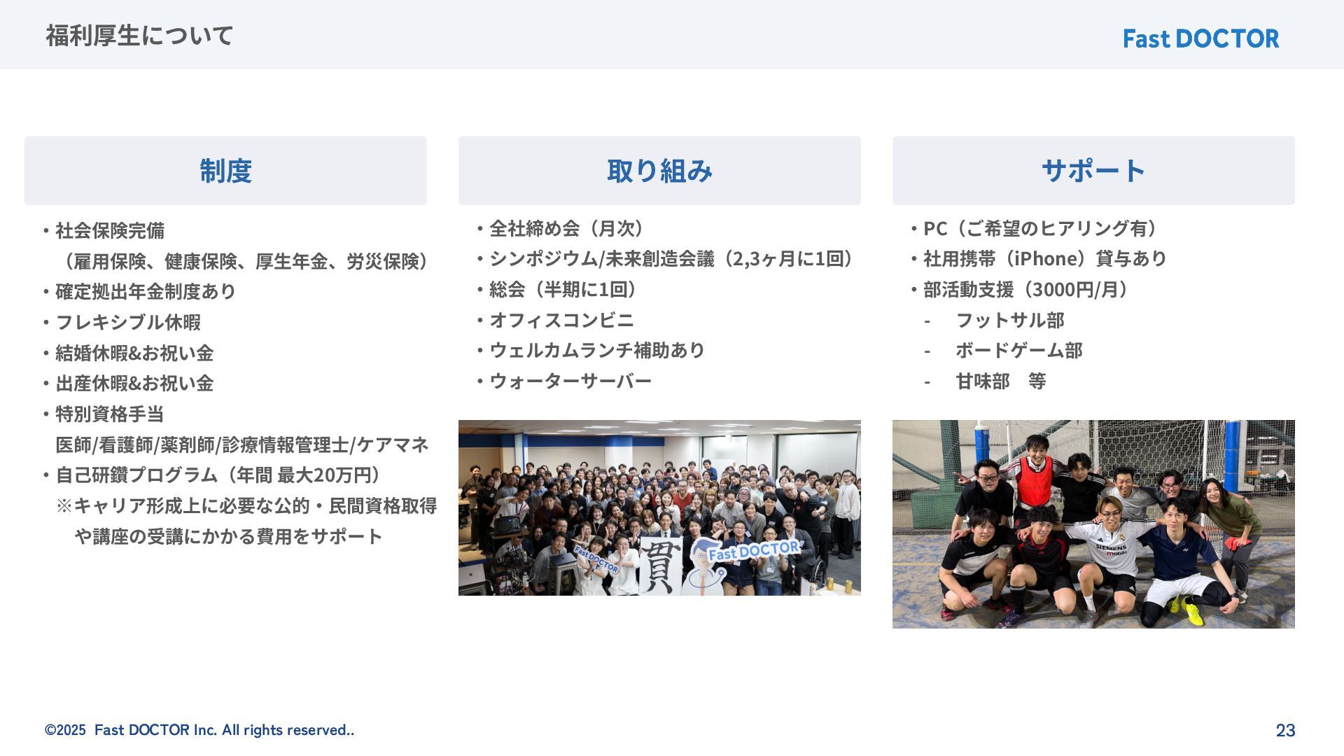©2025 Fast DOCTOR Inc. All rights reserved.. 23 福利厚⽣について ‧社会保険完備