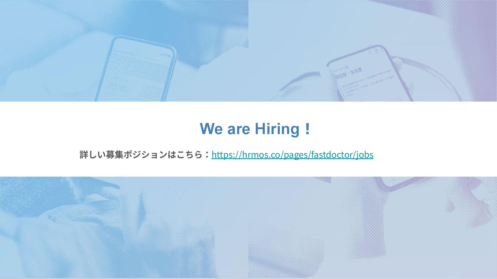 We are Hiring! 詳しい募集ポジションはこちら:https://hrmos.co/pages/fastdoctor/jobs