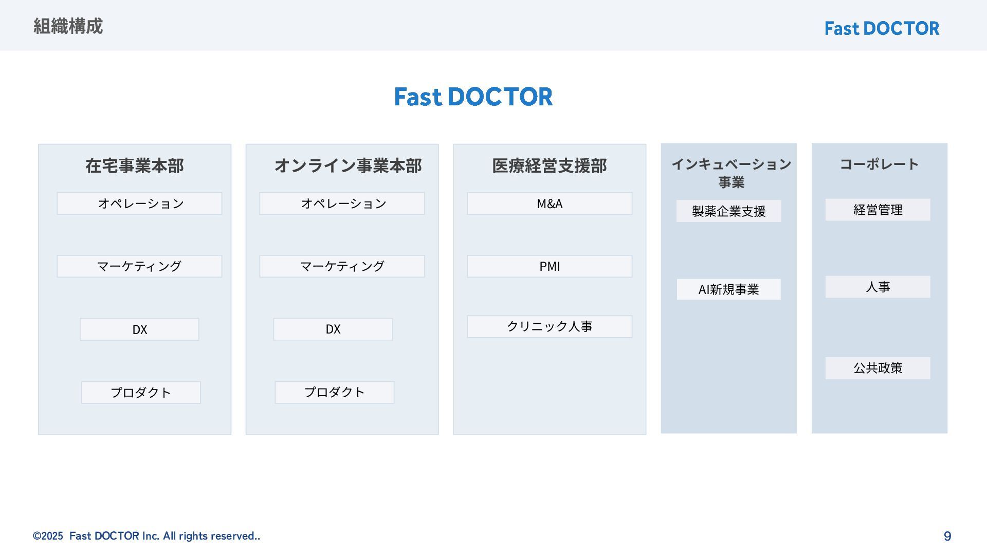 ©2025 FastDOCTOR Inc. All rights reserved.. 4. 組織について